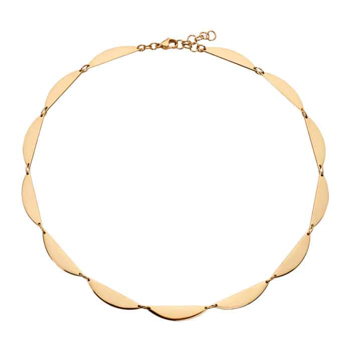 Die architektonisch, verspielt anmutende Halskette ist mehr als nur trendige Zierde: sie ist ein markantes Designstatement mit Art-Deco Anklängen. Mit ihrer eigenständigen Ausstrahlung unterstreicht sie perfekt den authentischen Stil ihrer selbstbewussten Trägerin.