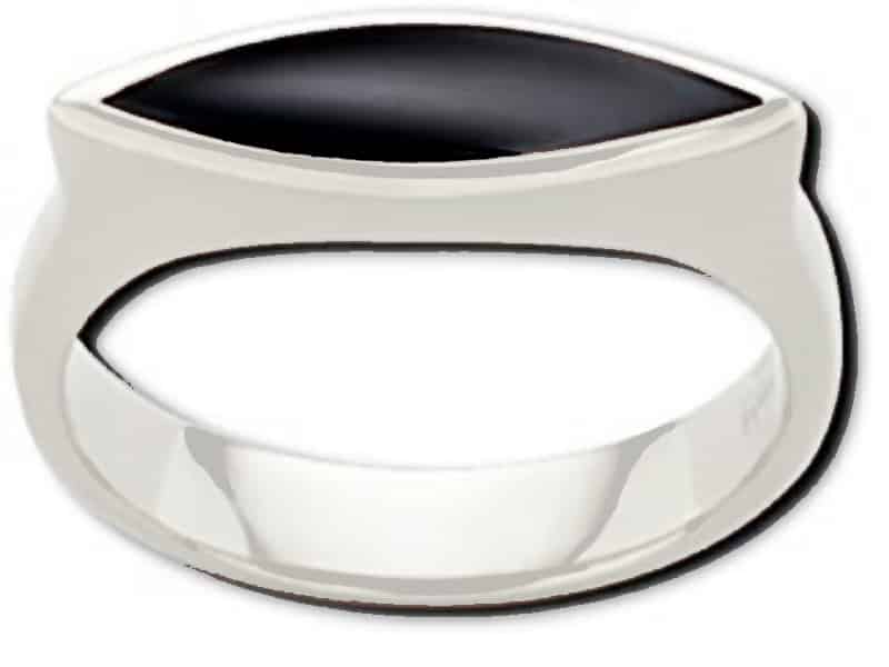 Edelstahl silber mit schwarzem Stein. Gr.54